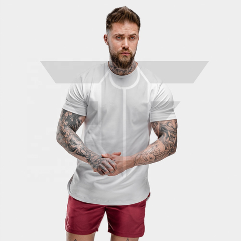Camiseta de corrida masculina, malha traseira, painel, bainha curva, esportiva